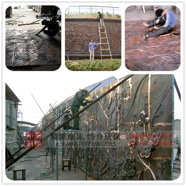 廣場銅浮雕是雕刻的一種,雕刻者在一塊平板上將他要塑造的形象雕刻出來,使它脫離原來材料的平面。浮雕是雕塑與繪畫結合的產物,用壓縮的辦法來處理對象,靠透視等因素來表現三維空間,并只供一面或兩面觀看。浮雕一般是附屬在另一平面上的,因此在建筑上使用更多,用具器物上也經常可以看到。由于其壓縮的特性,所占空間較小,所以適用于多種環境的裝飾。近年來,它在城市美化環境中占了越來越重要的地位。浮雕在內容、形式和材質上與圓雕一樣豐富多彩。浮雕的材料有石頭、木頭、象牙和金屬等。